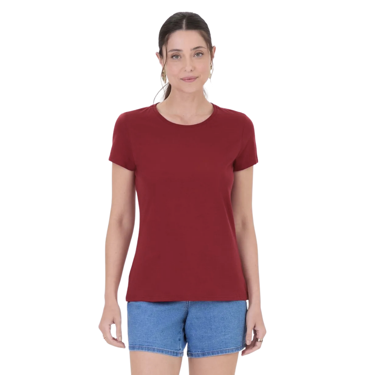 Com decote redondo clássico e mangas curtas, garante conforto sem marcar o corpo, ideal para diferentes biotipos e perfeita para compor diversos looks casuais.